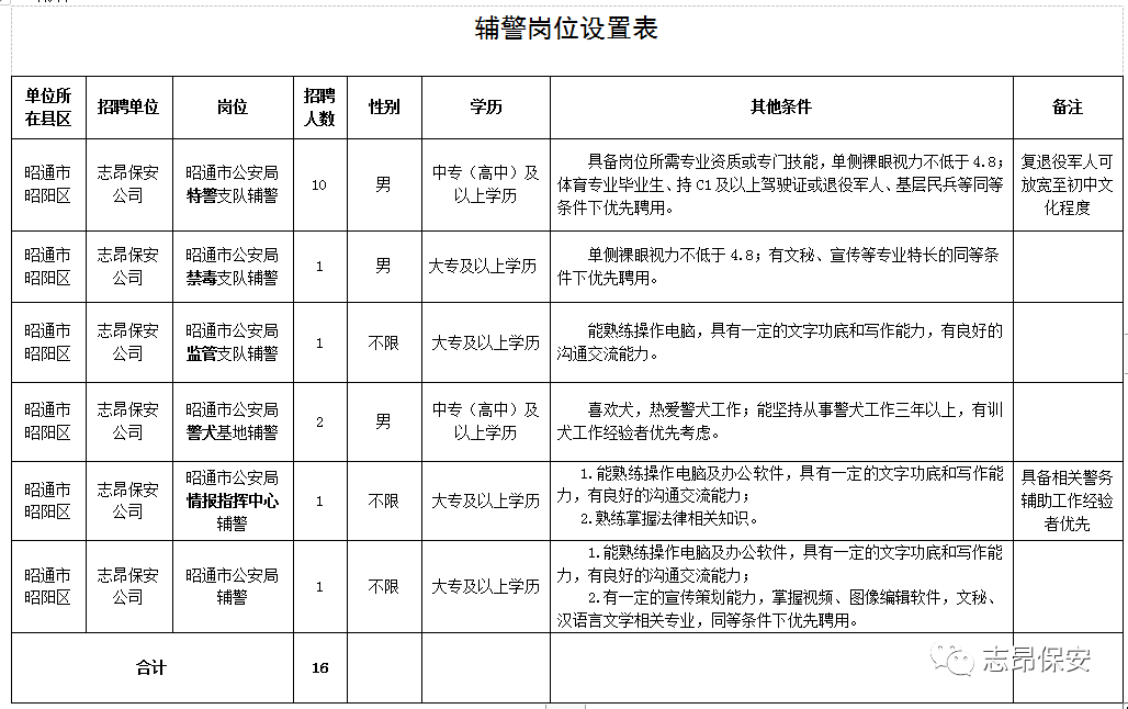 (二)派遣崗位:昭通市公安局輔警(具體崗位見(jiàn)附件《輔警崗位設(shè)置表》)